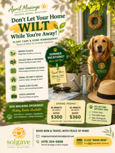Don’t Let Your Home Wilt While You’re Away Plant Care & Home Management for Summer Vacation April 2026 | SolGave Animal Solutions Summer is calling—and you deserve to answer. Whether it’s a beach getaway, a family road trip, or a long-overdue overseas adventure, the last thing you want weighing on your mind is what’s happening back home. At Solgave Animal