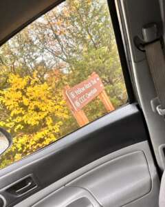 If you come in on exit 45 you’ll keep going back up the hill for about a mile and you’ll see a second sign for Yellow Rock loop and a pull in section to the right. I have included photos of the sign and how the parking looks for anyone interested.